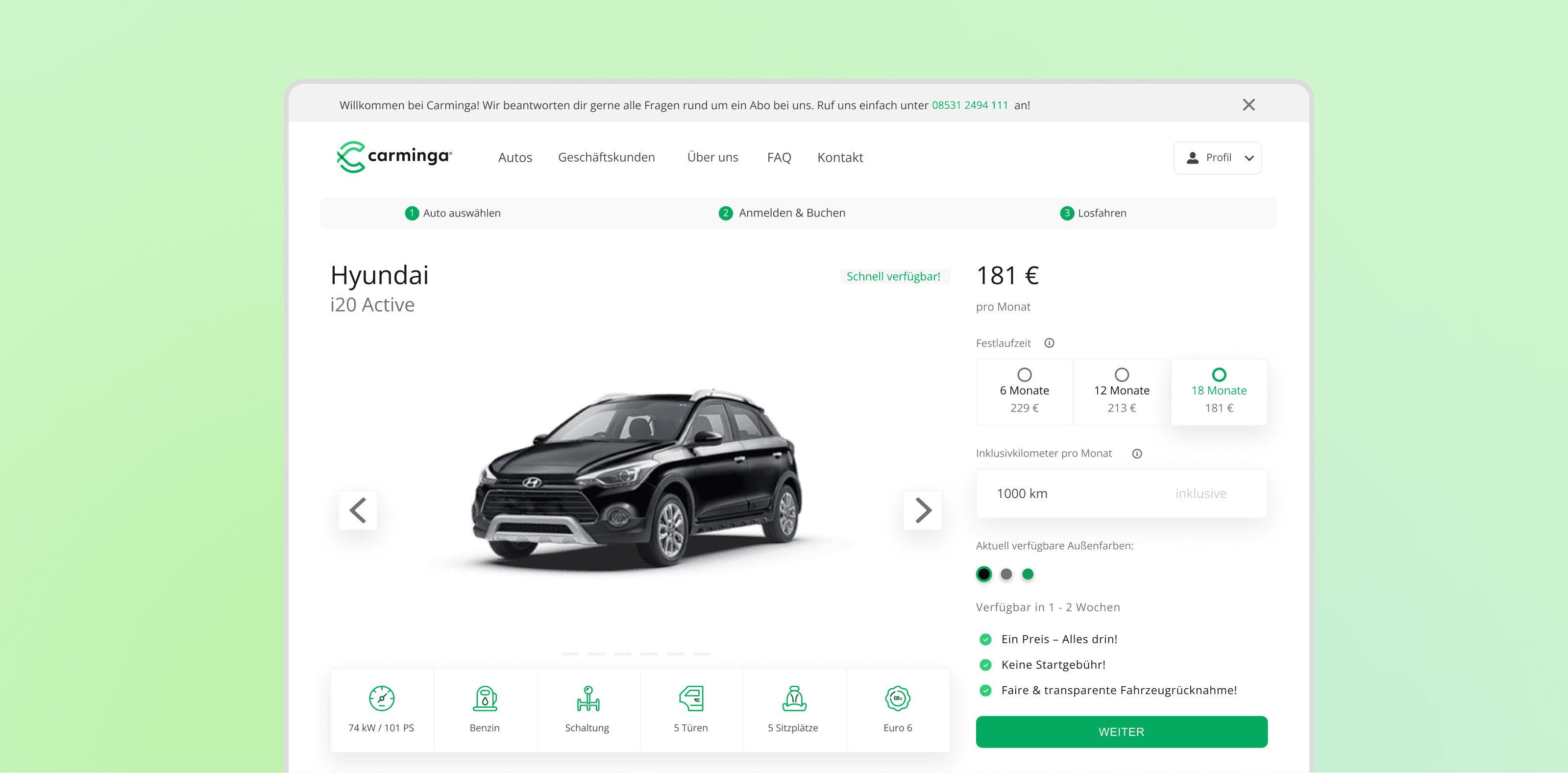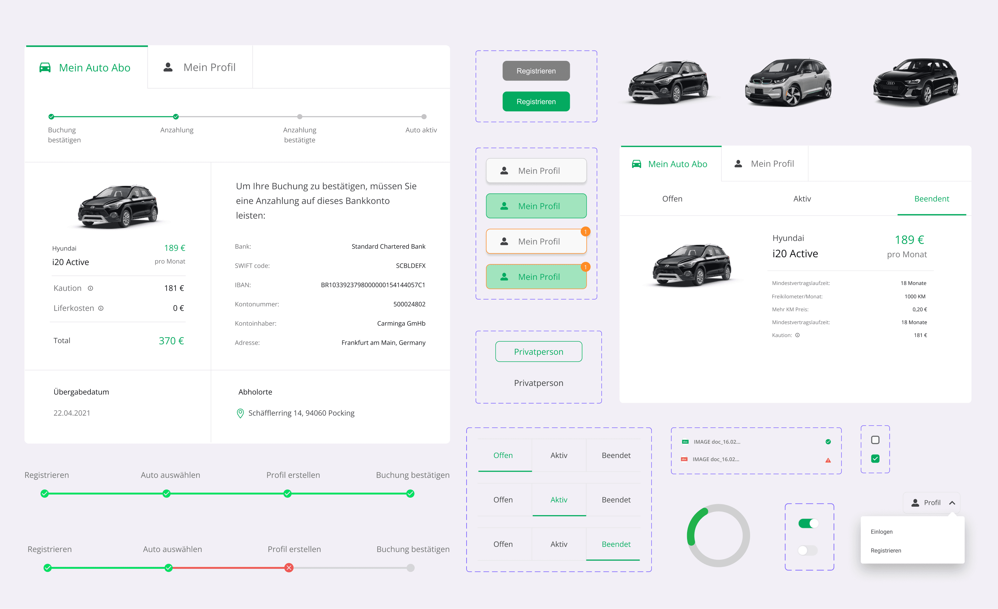 Carminga, a German startup offering flexible car subscriptions, was gaining traction but facing friction in the first user journey. The onboarding flow was lengthy and unclear, leading many users to abandon the process before completing identity verification or booking their first car, which directly affected activation and conversion rates.